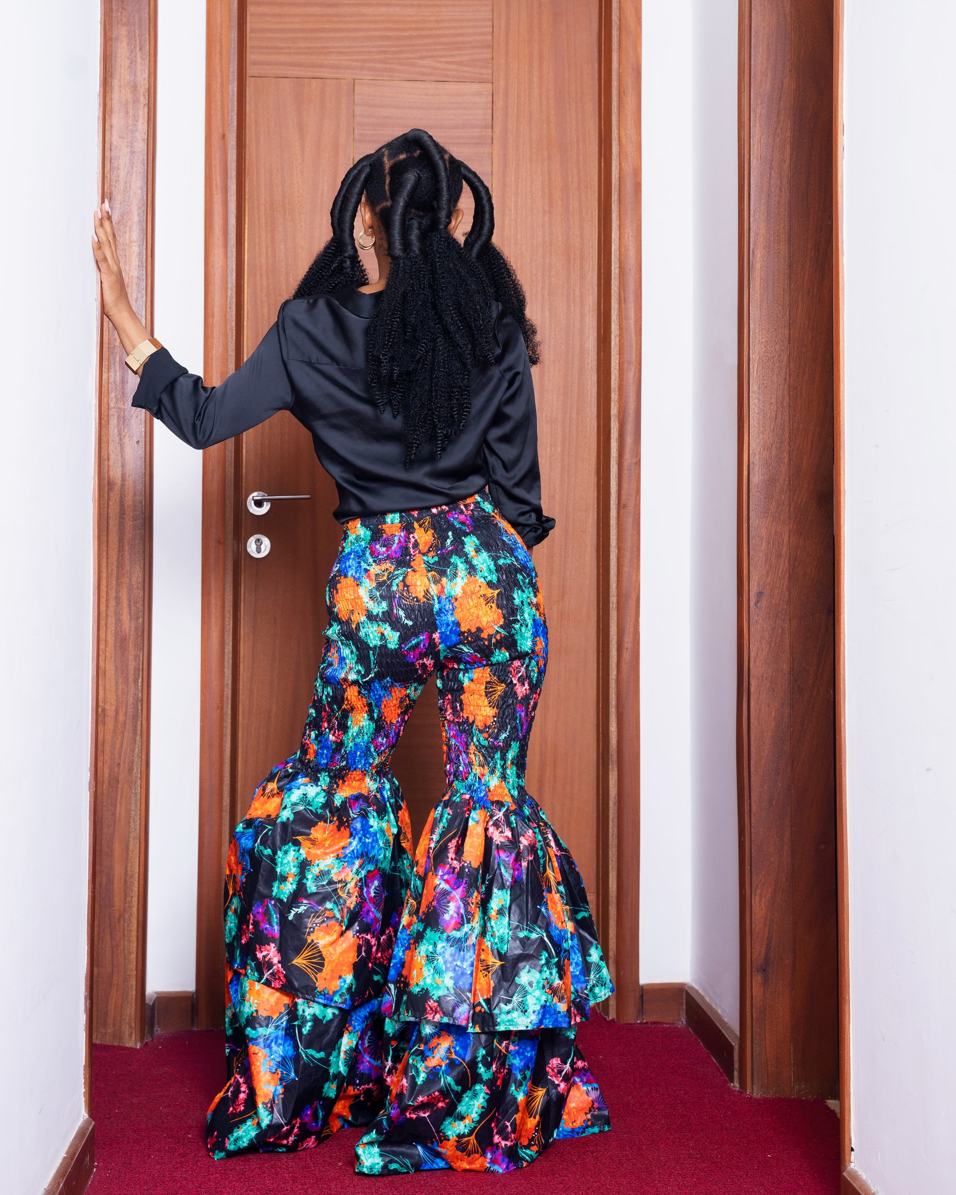 This bell bottom Ankara pant is designed to flatter your body as its high-waisted for that snatched silhouette and crafted from soft, stretchy quality African fabric to ensure they hug you in all the right places whilst giving you the freedom of movement.