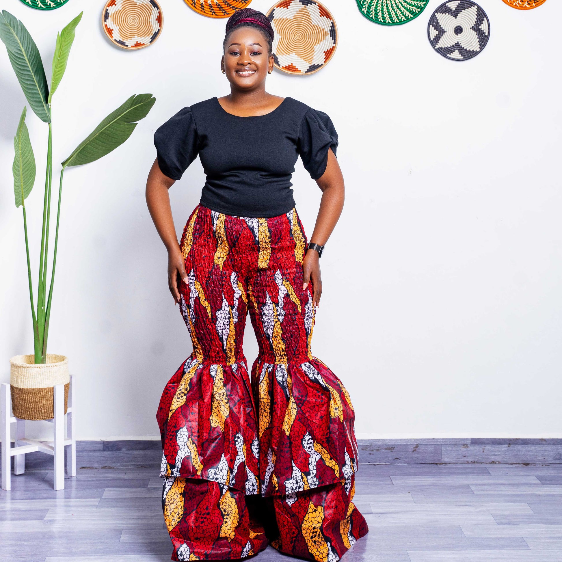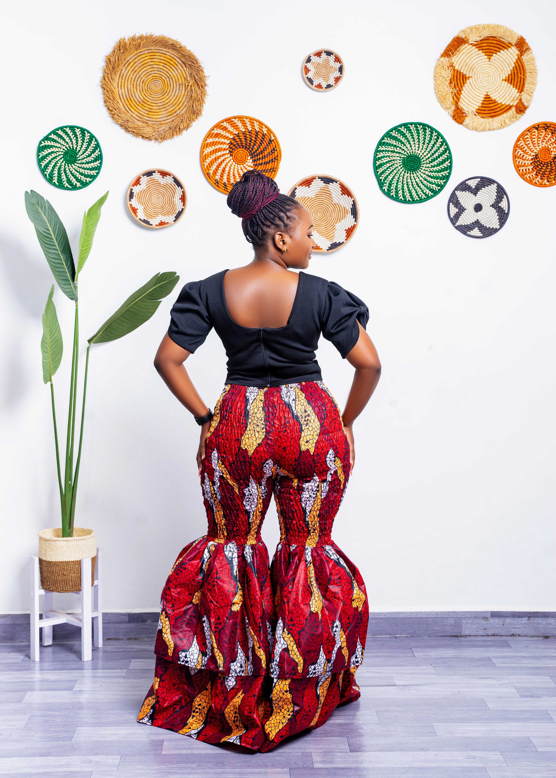 This bell bottom Ankara pant is designed to flatter your body as its high-waisted for that snatched silhouette and crafted from soft, stretchy quality African fabric to ensure they hug you in all the right places whilst giving you the freedom of movement.