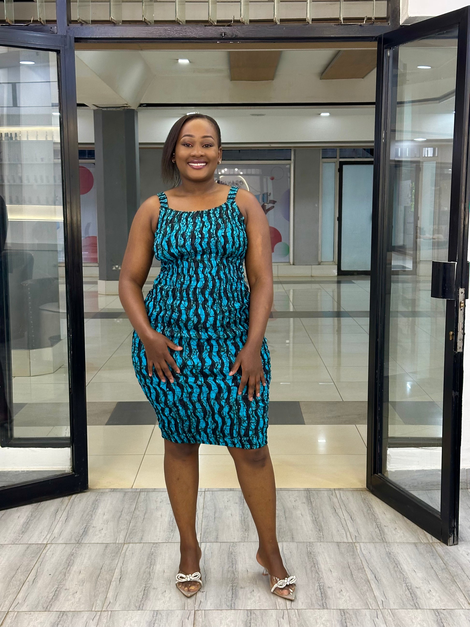 This outfit feature a mid-length Ankara bodycon dress that will hug you in all the right places making you to look both feminine and stylish.