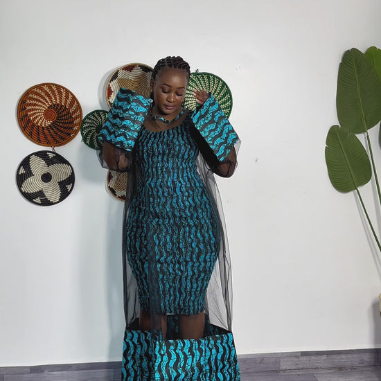 The dress also come with a lace and Ankara cover up that will give you the classic and glamorous look fit for a queen.