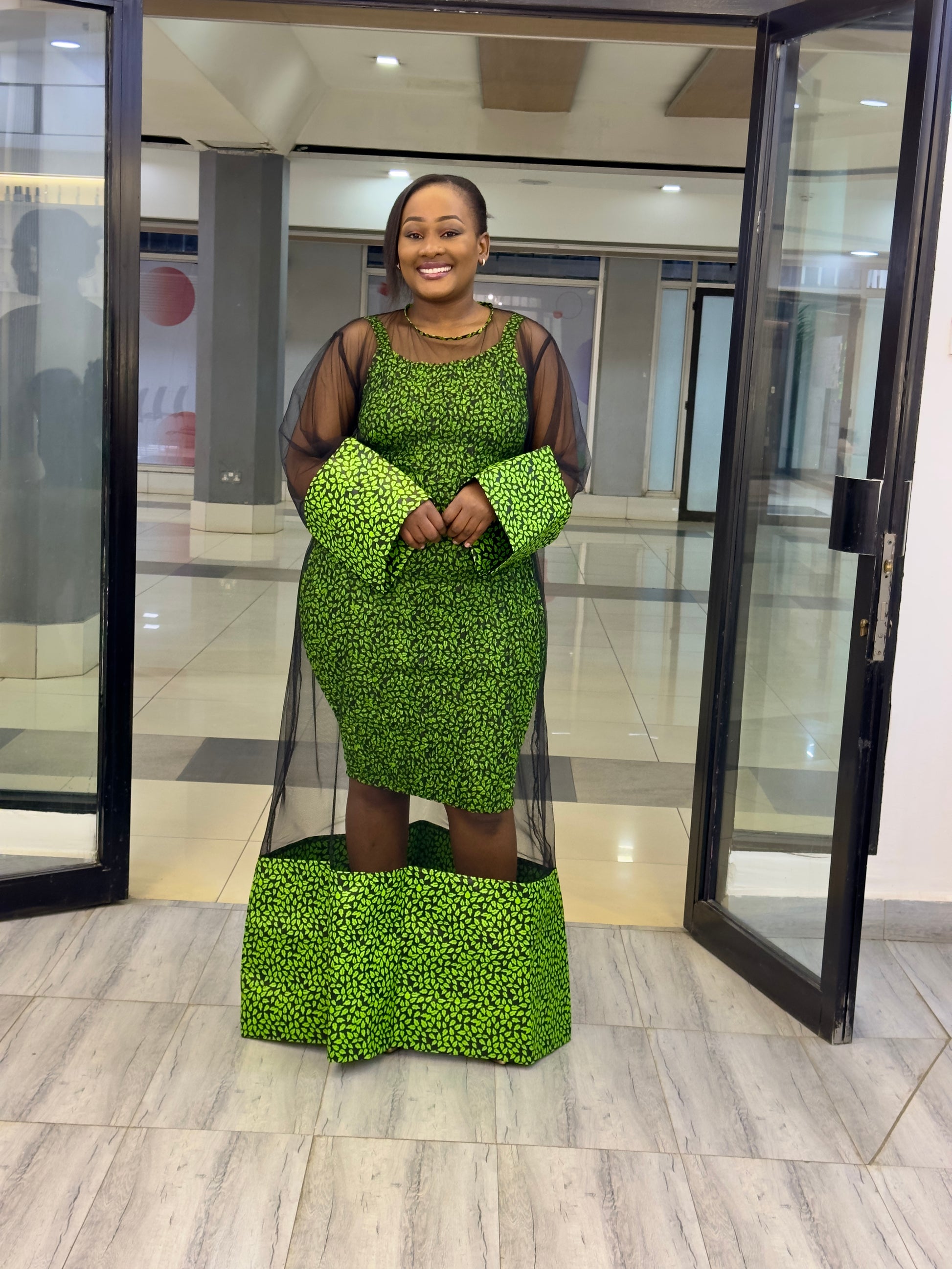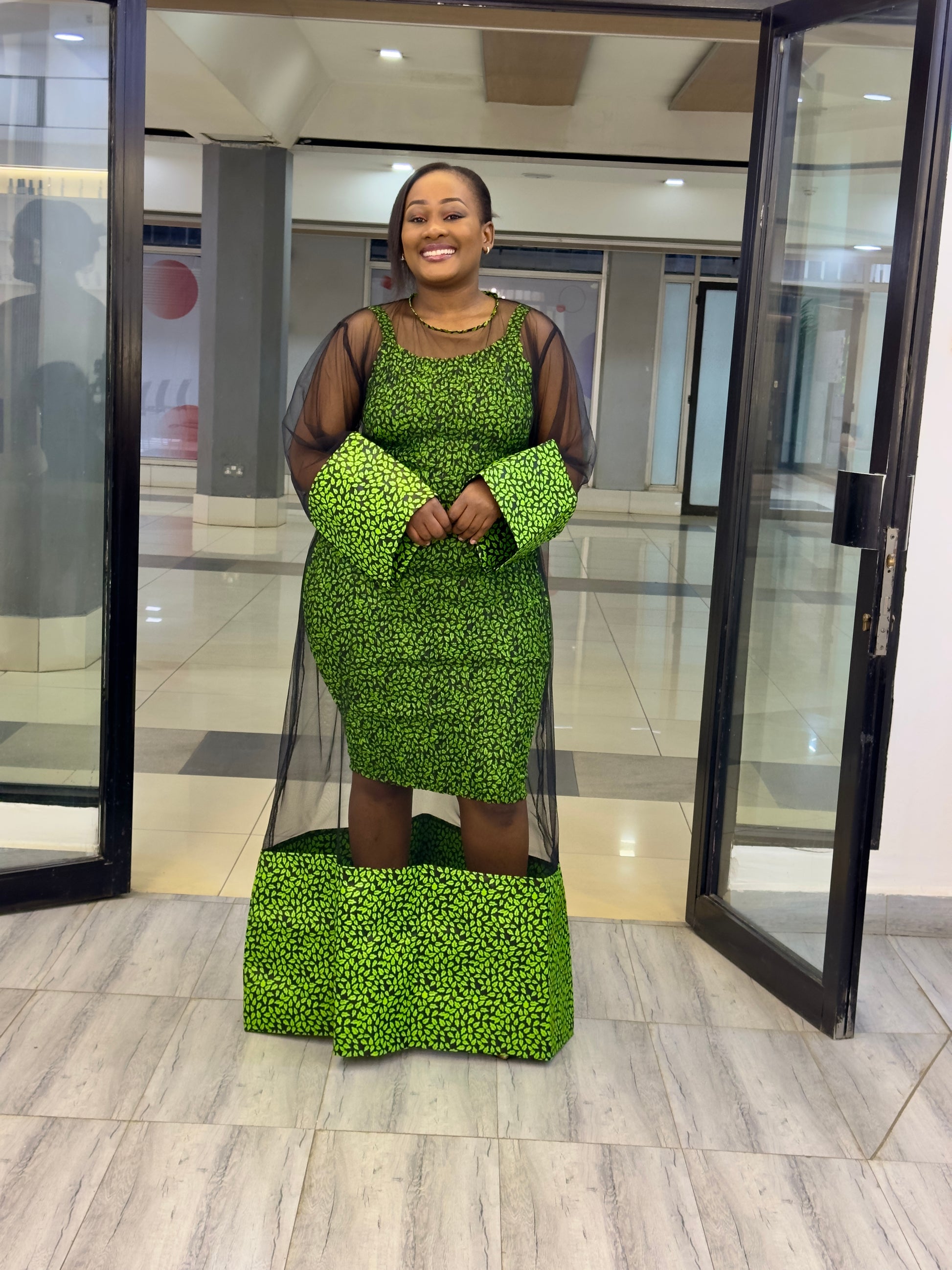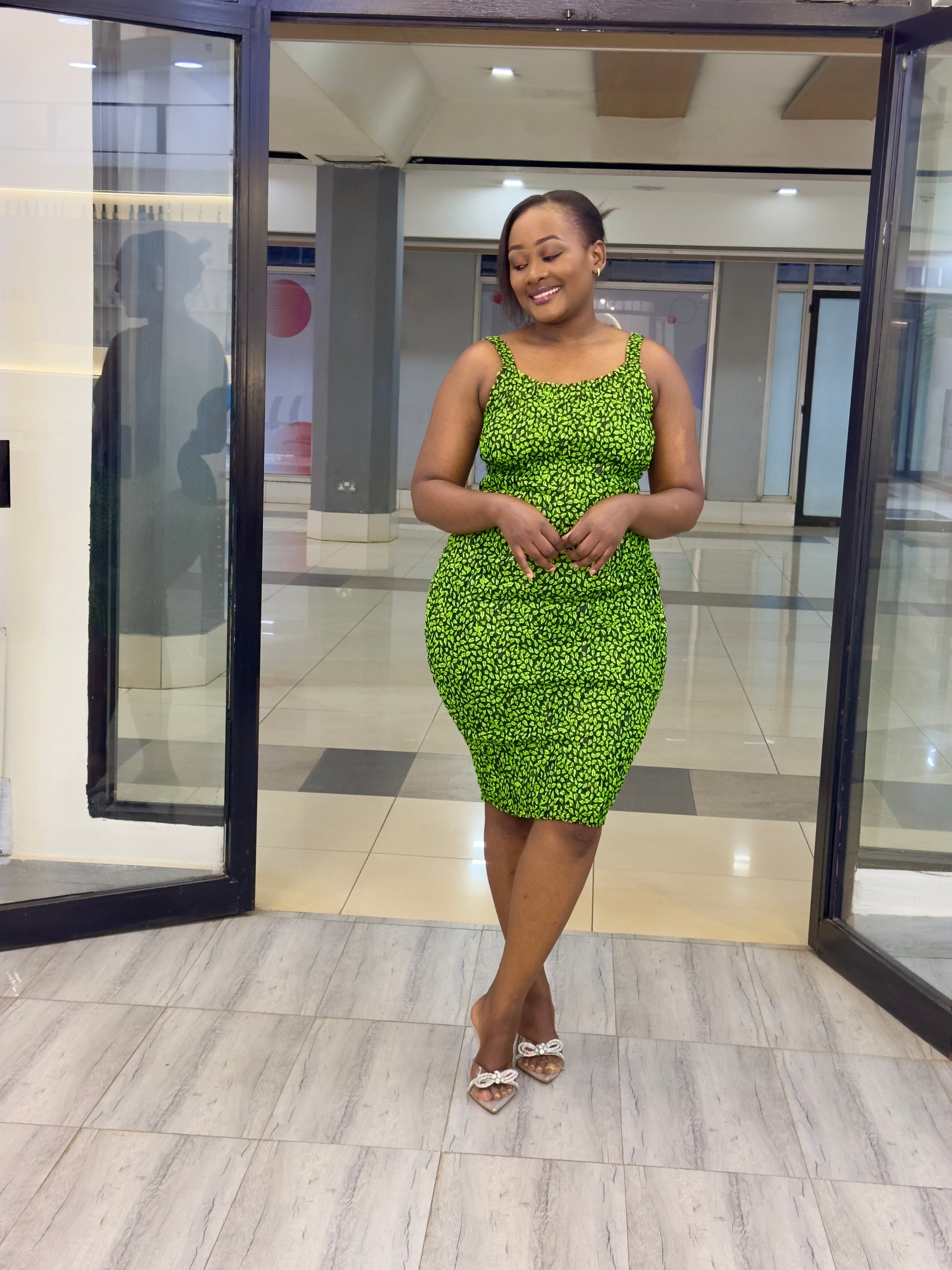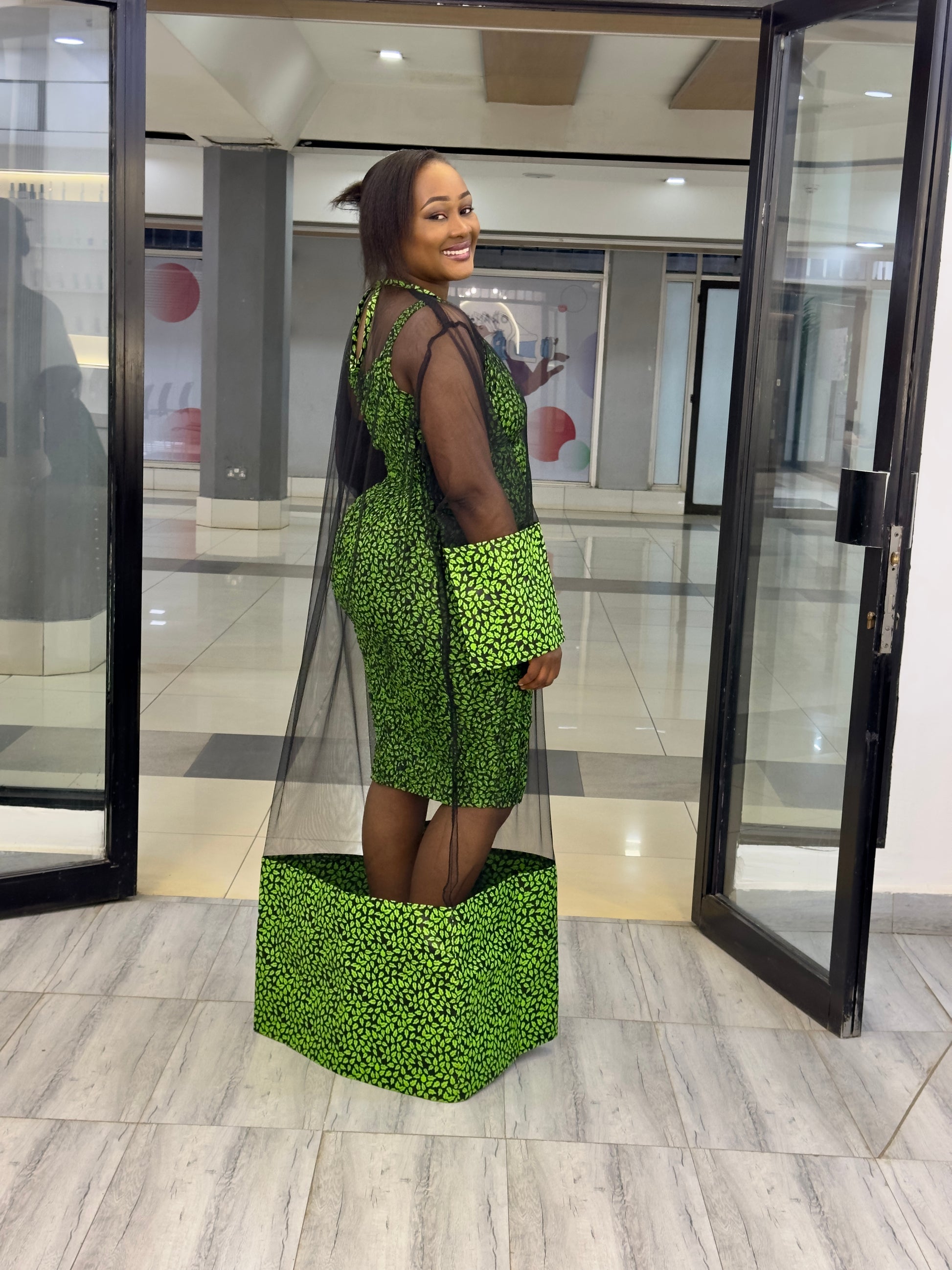 This outfit feature a mid-length Ankara bodycon dress that will hug you in all the right places making you to look both feminine and stylish.