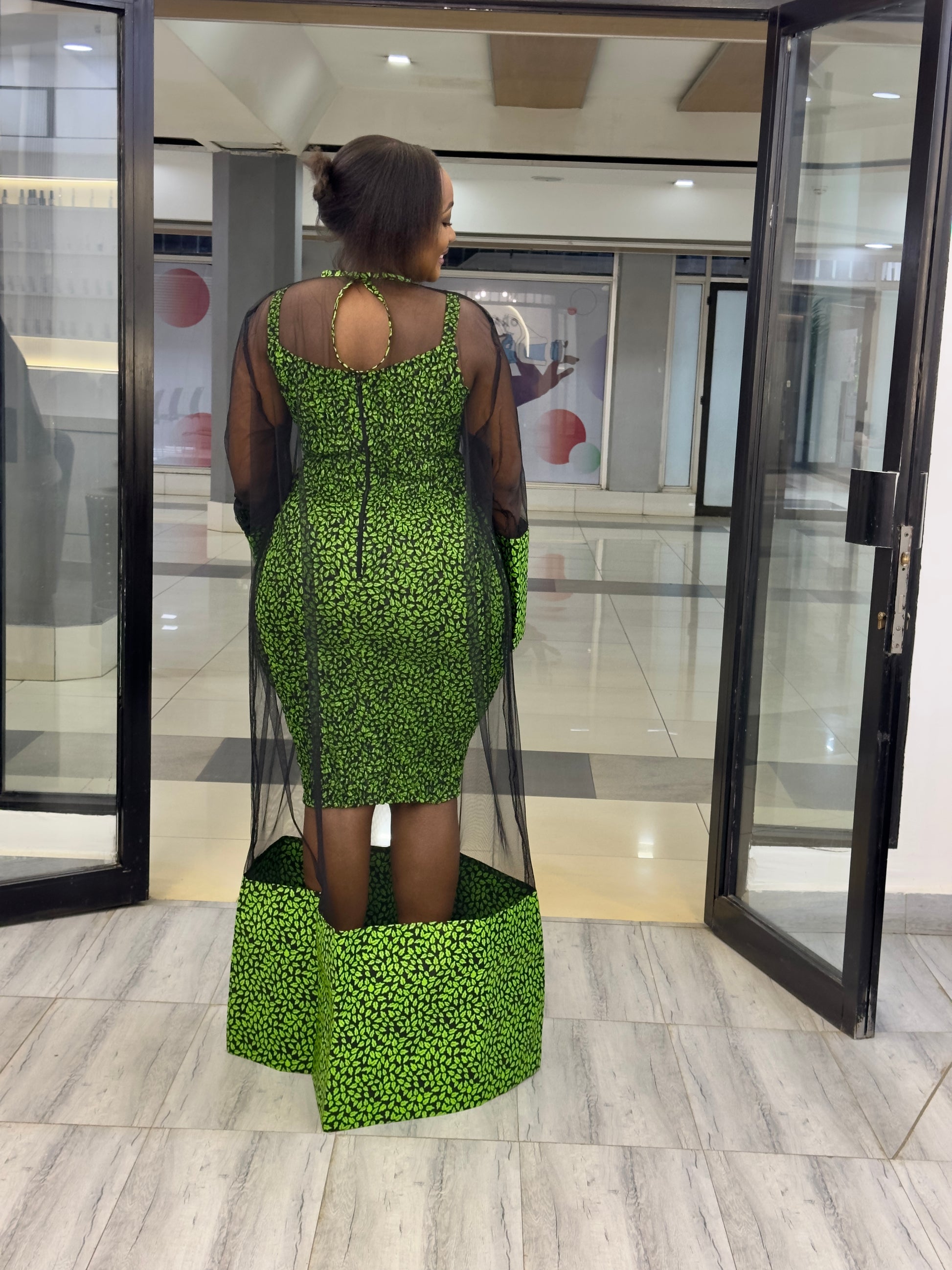 The dress also come with a lace and Ankara cover up that will give you the classic and glamorous look fit for a queen.