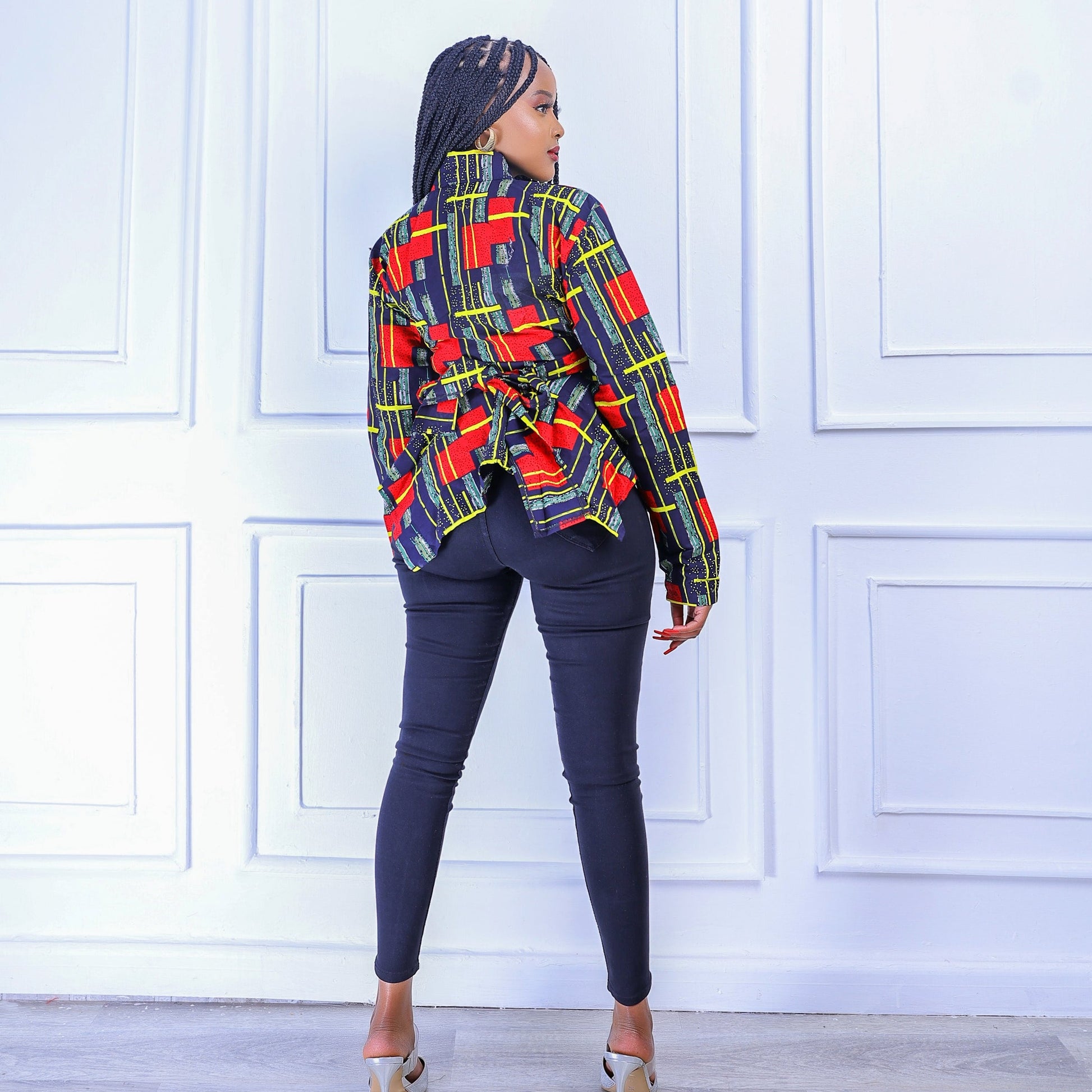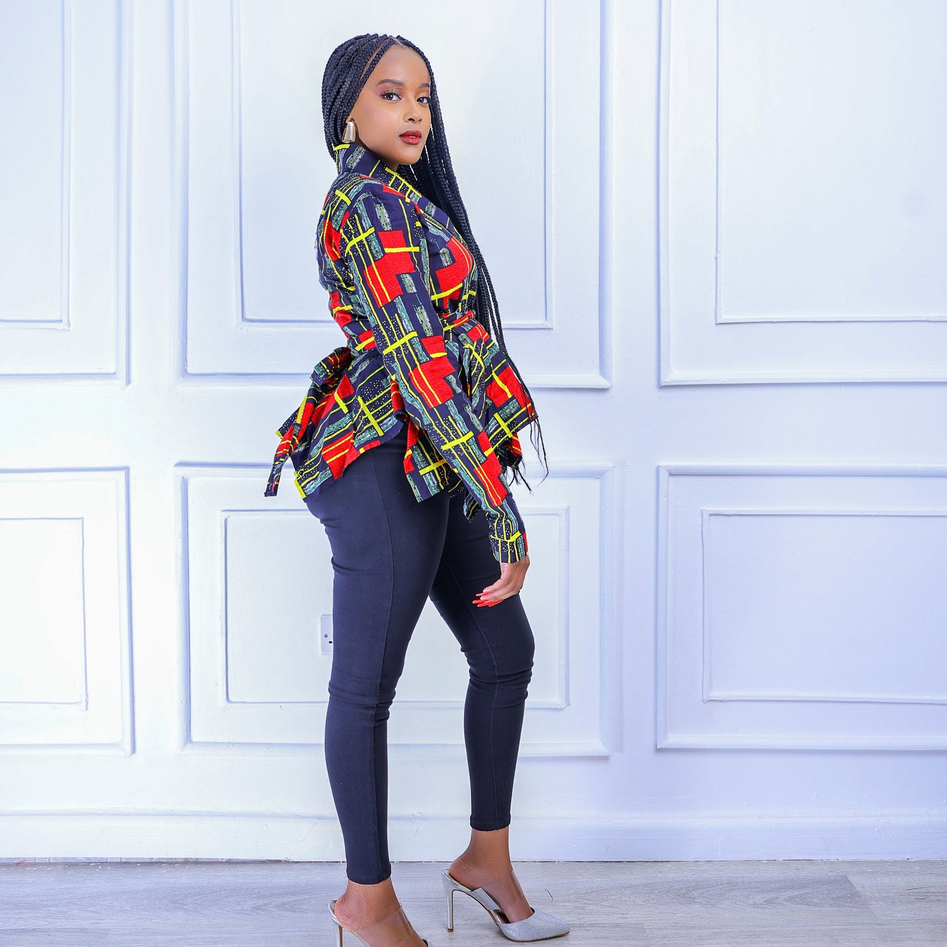 Kayammah's new Nkofa women's African print peplum blouse is a magnificent match for a season that calls for an all-cotton comfort. The subtle colors, the cool V-neck, and the flared peplum waist flatters any body type.