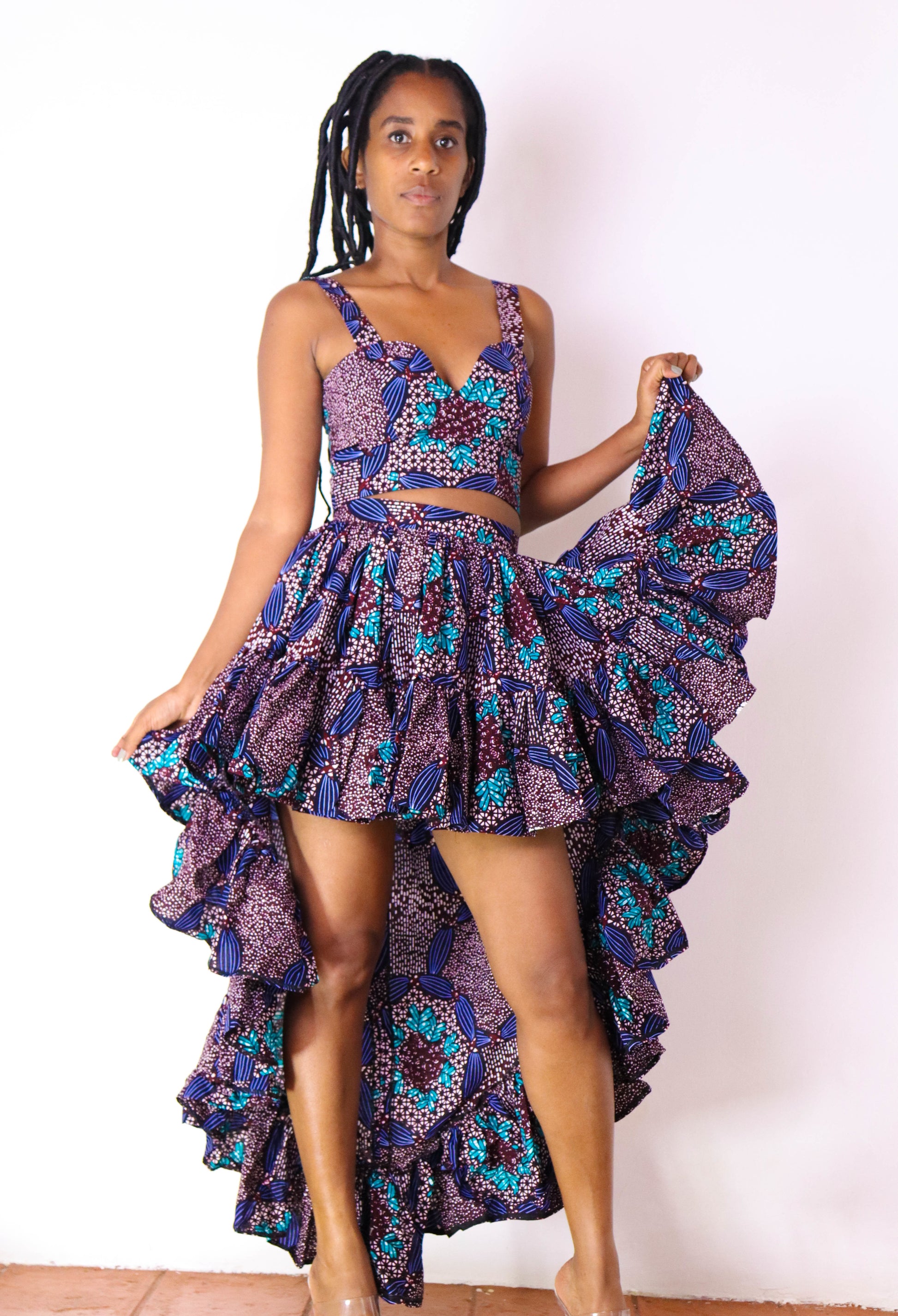 Ora Women's African Print Crop Top (Purple Matching Top)