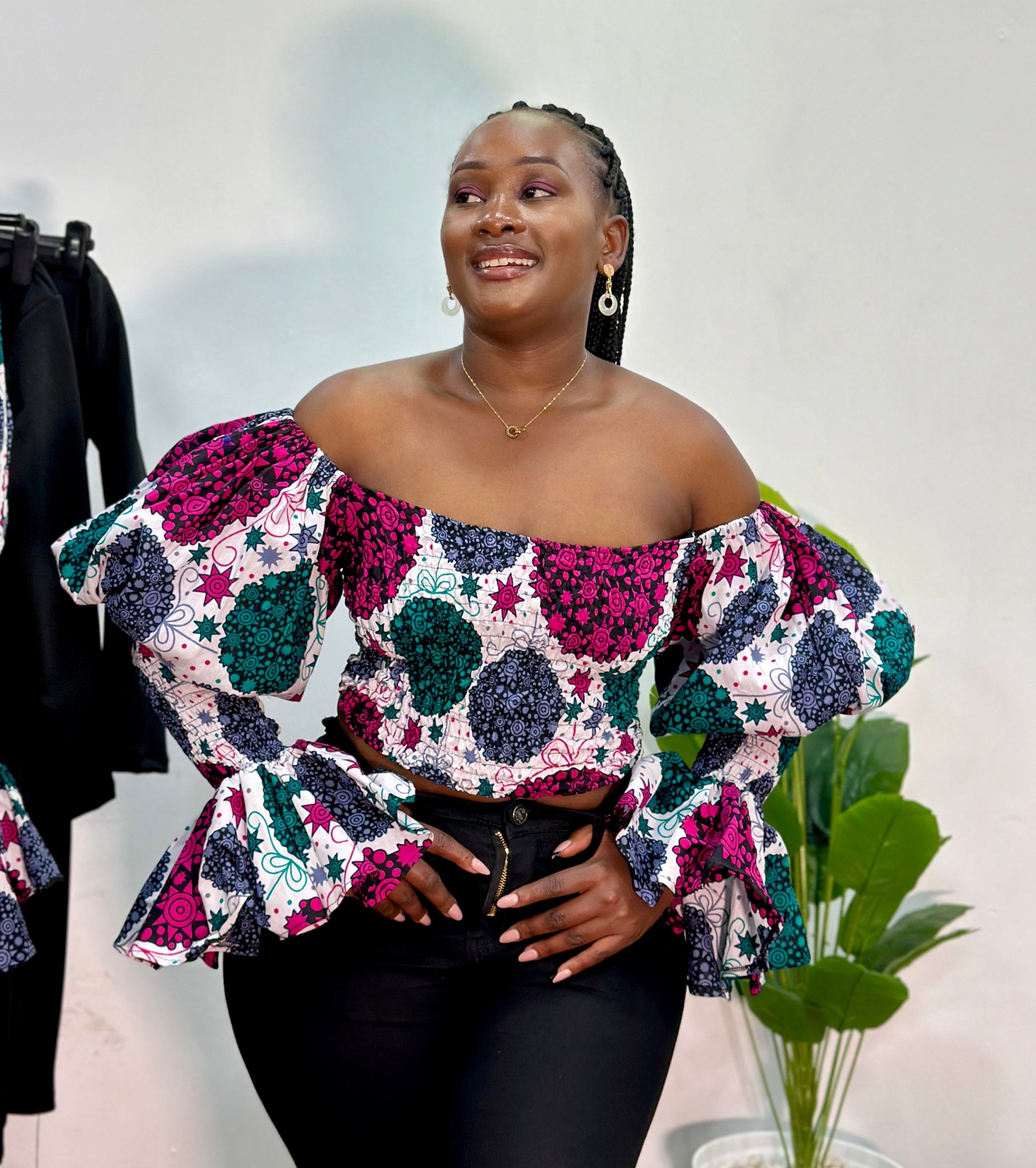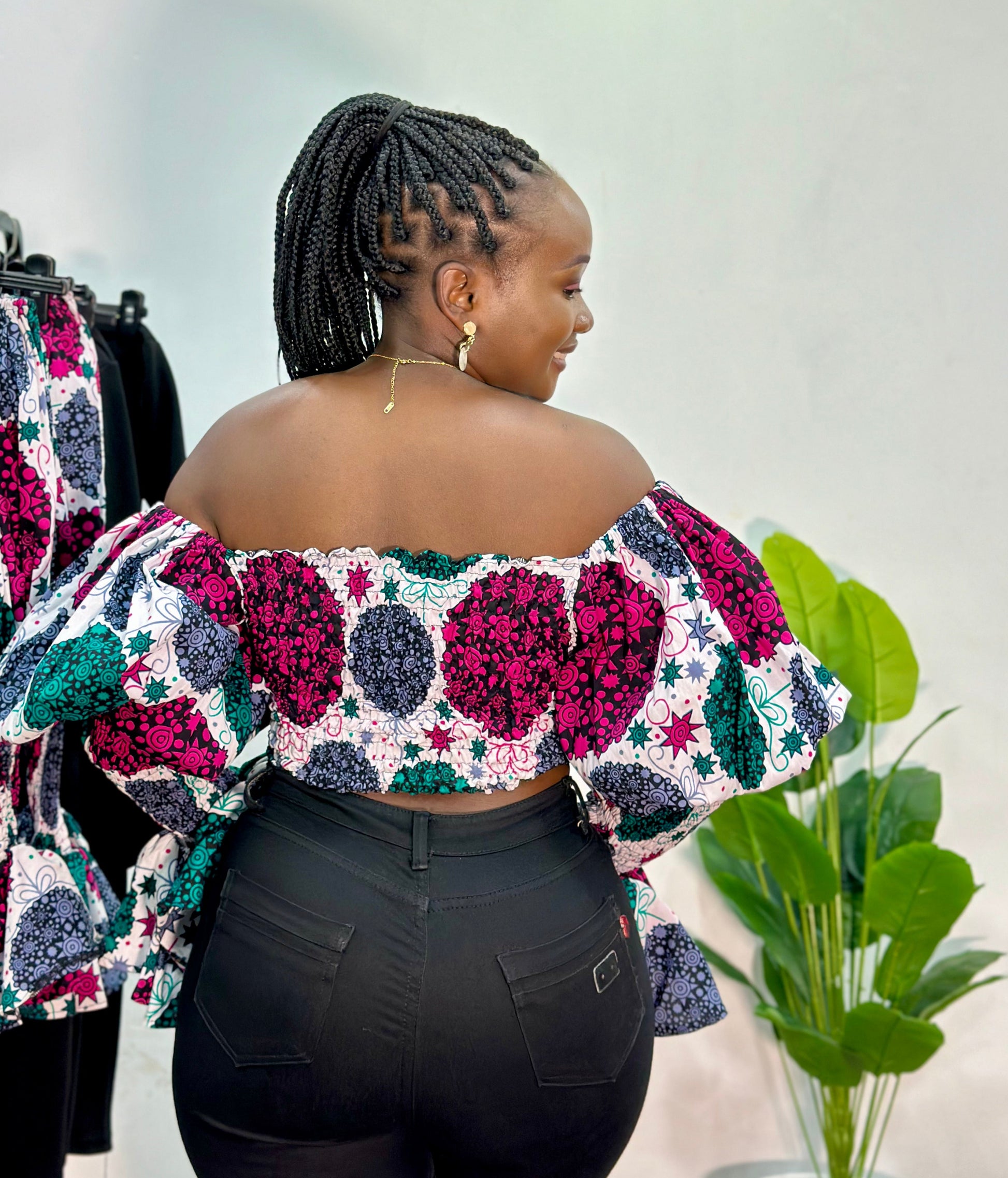 Whether you're looking for a fresh New Year look or something fire for your next girl's trip, this off-shoulder Women's African print crop top is the perfect OOTD for you.