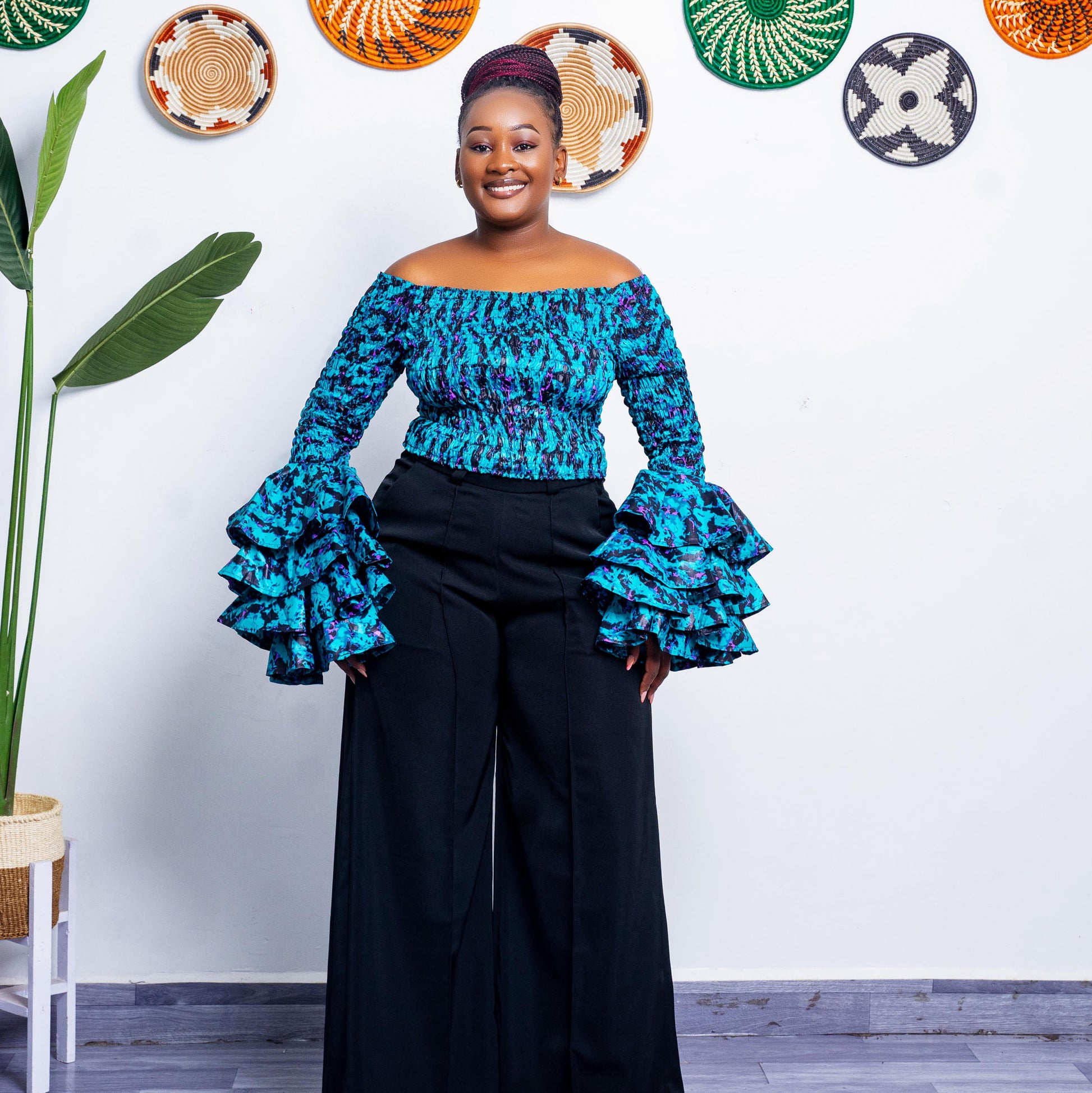 Make a statement with our African print top with dramatic Sleeve, designed to add effortless elegance and bold flair to any outfit.