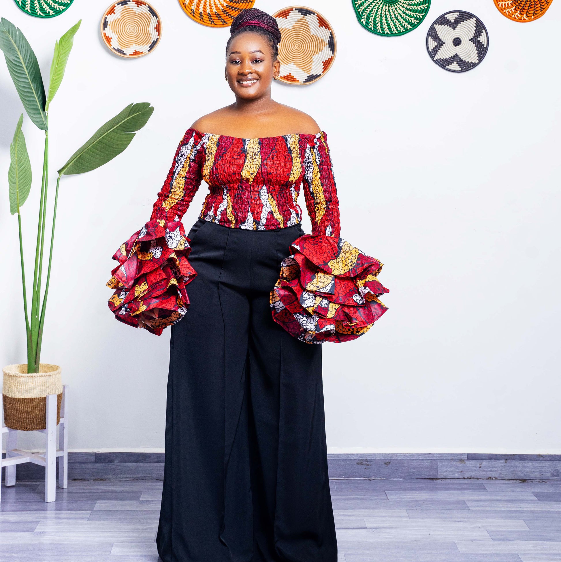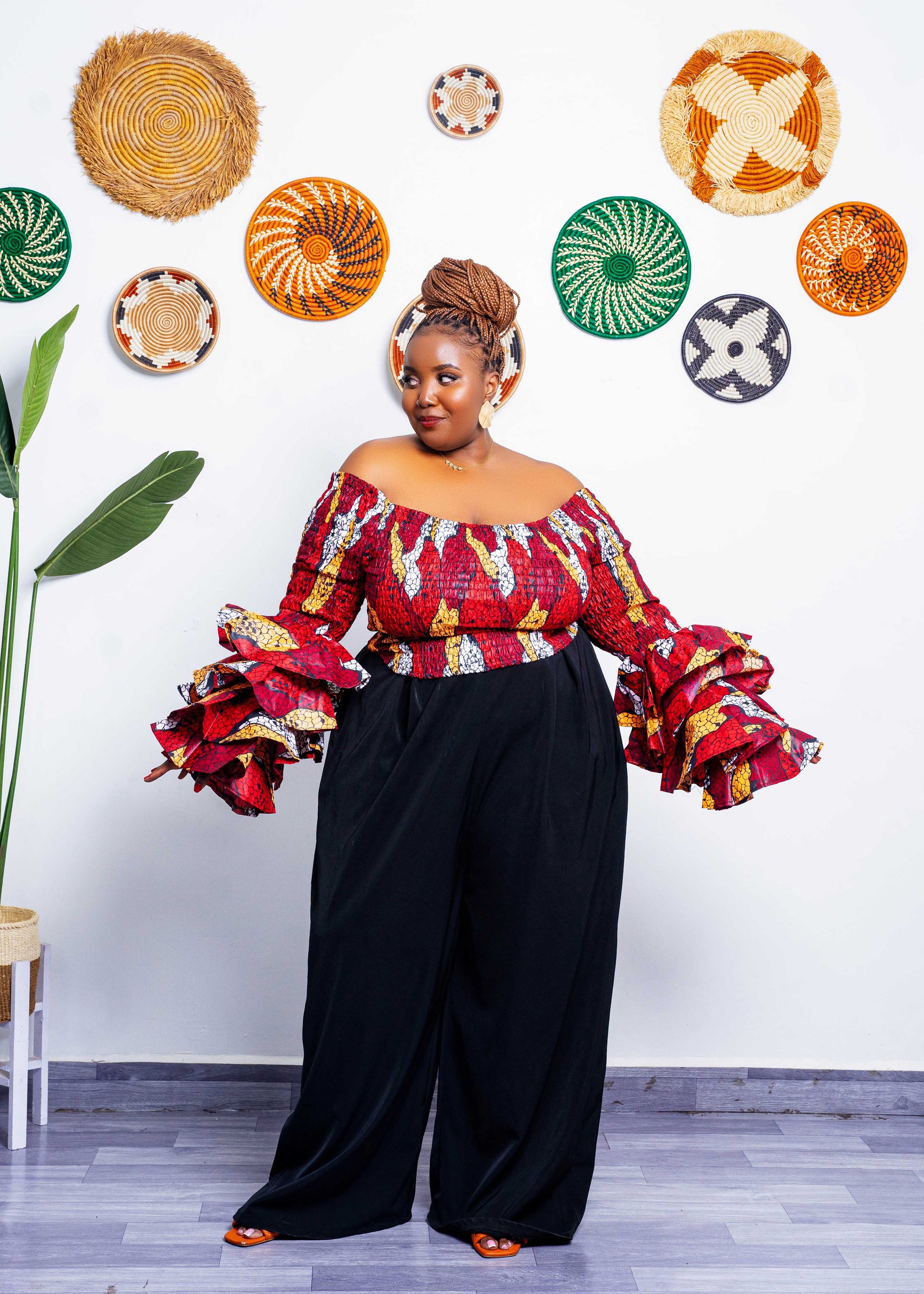 Make a statement with our African print top with dramatic Sleeve, designed to add effortless elegance and bold flair to any outfit.