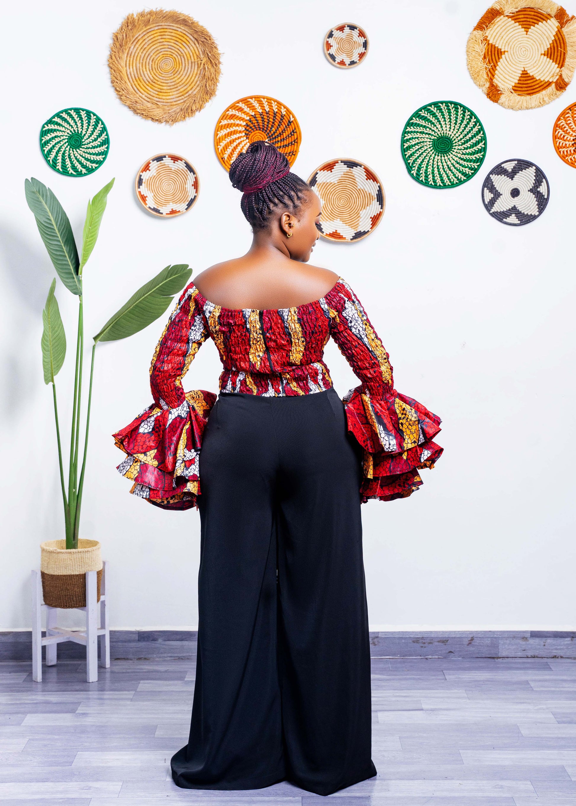 Soso Women's African Print Top with Dramatic Sleeves - Red